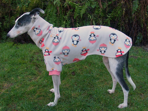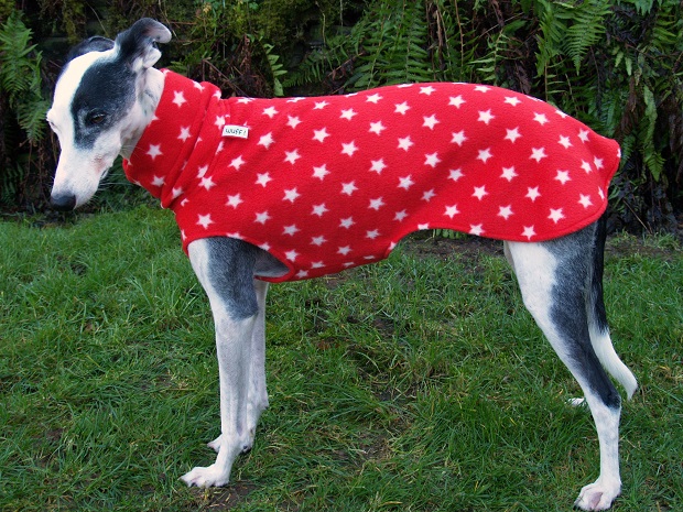 Die Fleece-Pulli`s sind in 4 Größen für Whippet, Silken und Co. lieferbar...