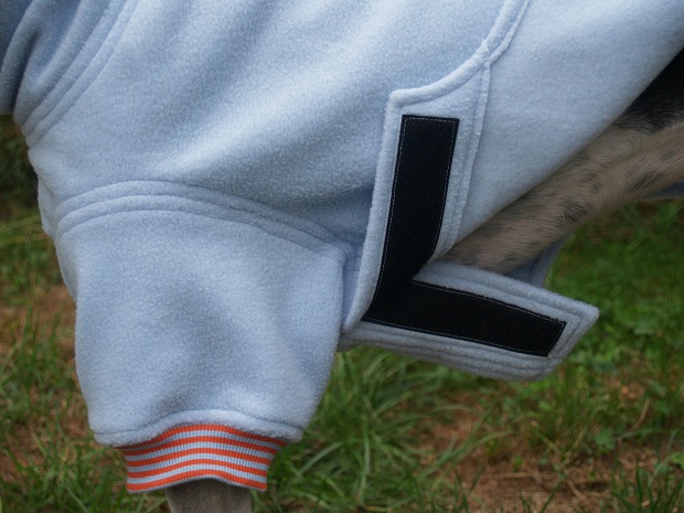 Für Dreibeinchen, die ängstlichen Vertreter, oder die älteren, nicht mehr so gelenkigen Nasen ist der Fleece-Pulli mit Klett die Variante der Wahl.